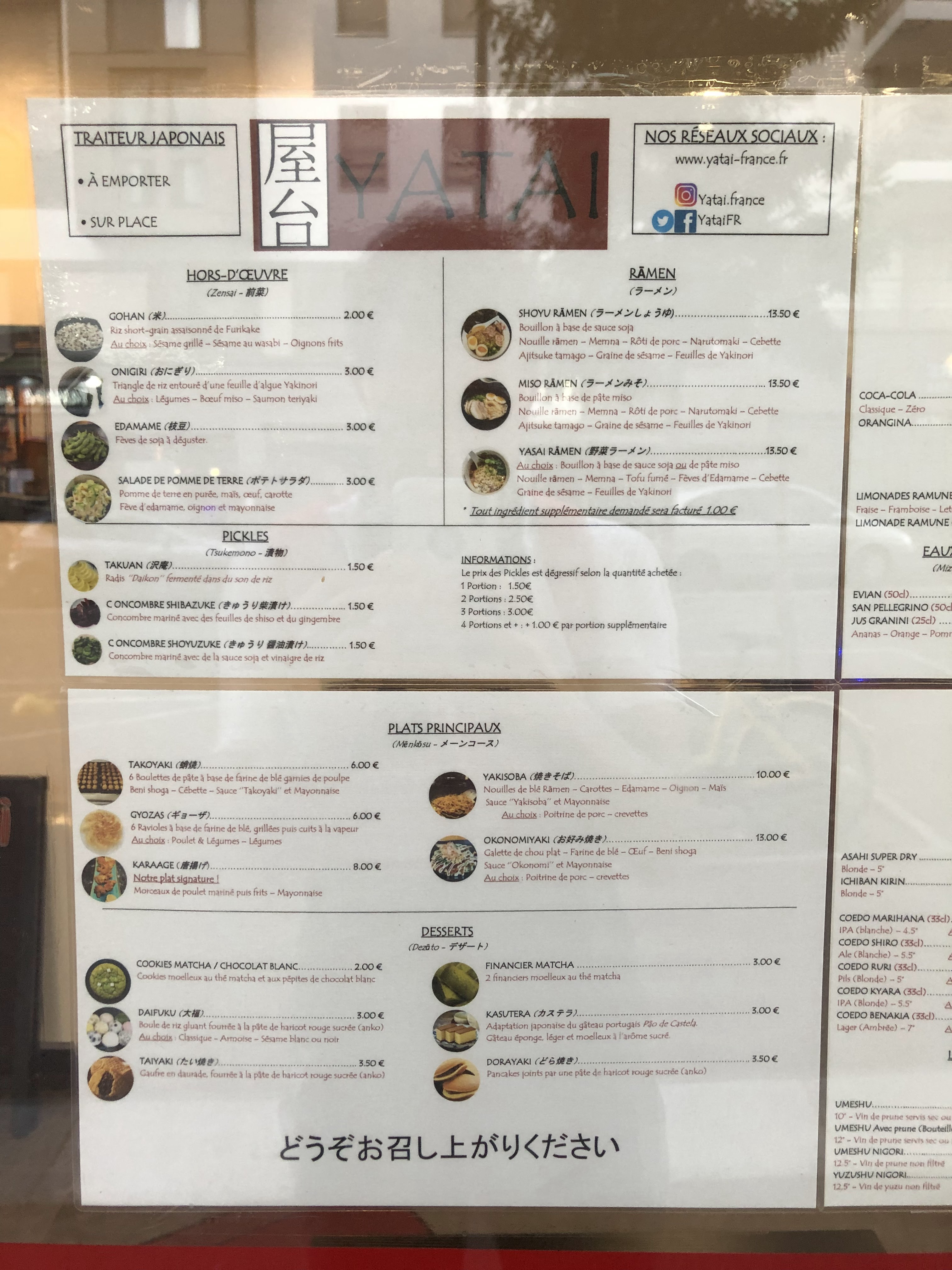 La nouvelle carte est là et le retour des Ramen ! De l’entrée aux desserts, on voyage au pays du soleil levant. Vraiment une bonne expérience, très bon avec des produits qui ont dû goûts. Ont sent la passions des propriétaires pour la cuisine japonaise et la culture. Au niveau prix c’est correct, serviable nous a servis a emporter proche de la fermeture (merci !!!). Du renouveau dans le quartier. Je vous conseil vraiment une petite escapade culinaire chez Yatai.