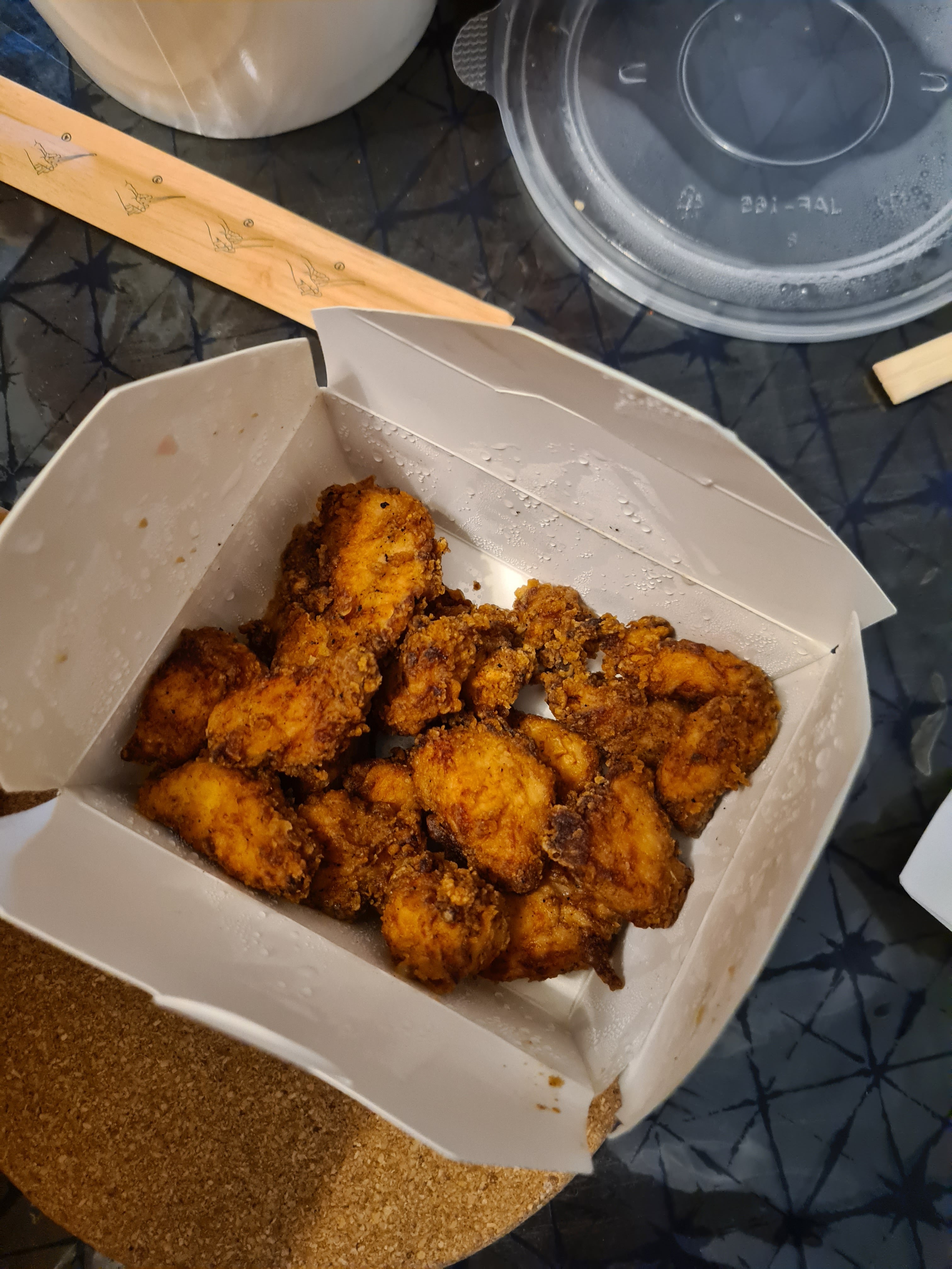 L'onigiri était bon ainsi que les bubbles teas. Sachant que c'est une enseigne qui fait majoritairement à emporter, il serait pertinantde faire en sorte que le bouillon soit séparé du contenu du ramen, car lorsqu'on arrive chez soi, les pates ont absorbées les 3/4 du bouillon. Les produits qui constituent ce dernier, ainsi que le bouillon ne sont sont pas de qualités, pour 1€ de moins à Paris on peut trouver d'excellent ramens. Les takoyakis n'ont pas un très bon goût et le poulpe à l'intérieur est quasi inexistant. C'est fort regretable car les traiteurs de street food japonaises sont très rares dans la zone.